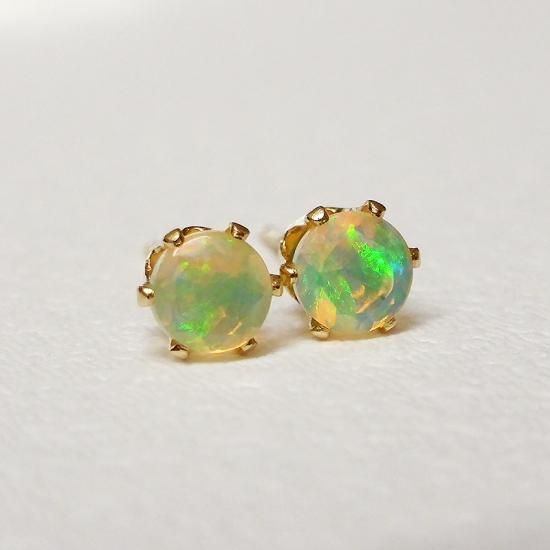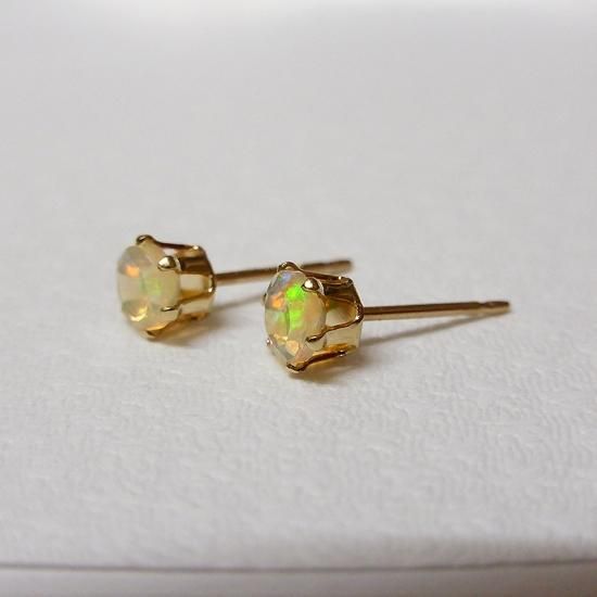 綺麗な遊色反応を楽しめる小さな小さなオパールのピアスです。