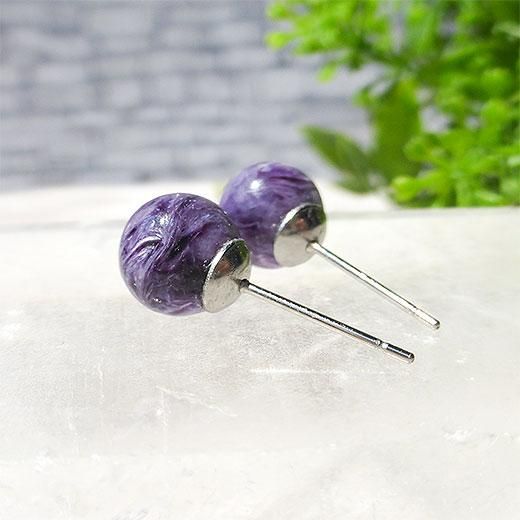 くすんだり黒ずんだりしていない紫色が本当に綺麗でチャロアイトによくある黒い部分はこのピアスには入っていませんので、流れるような模様がしっかりと楽しめます。