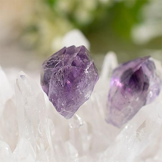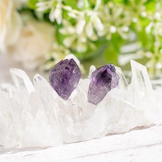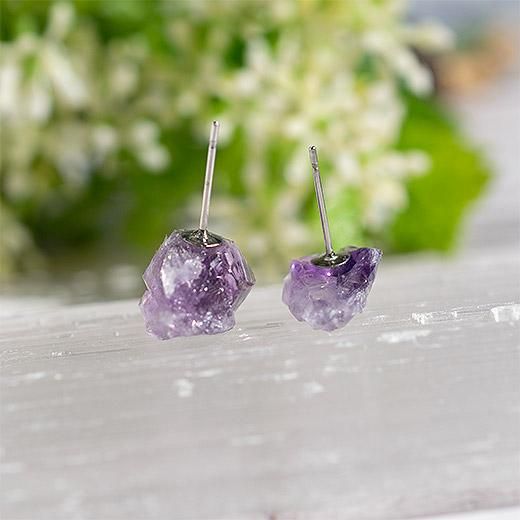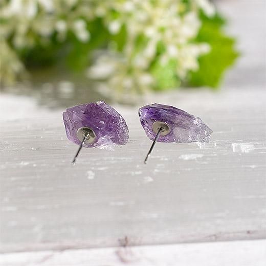 小さなアメジストのポイントを使用したピアスで透明感のあるきれいな紫色は耳元を個性的な雰囲気にしてくれます。