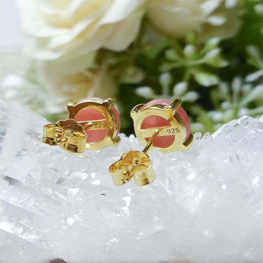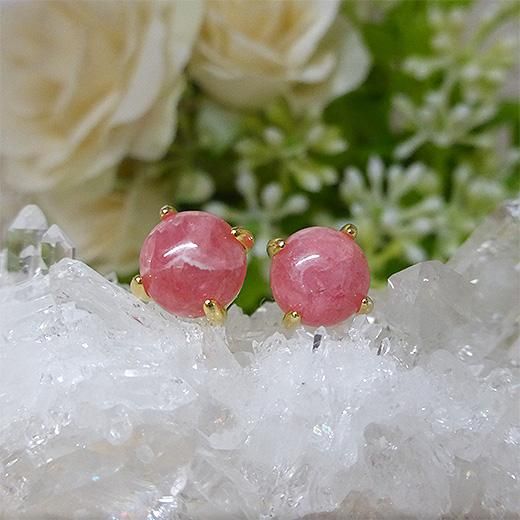 可愛らしい赤みを帯びたピンク色のカボションを使用しております。