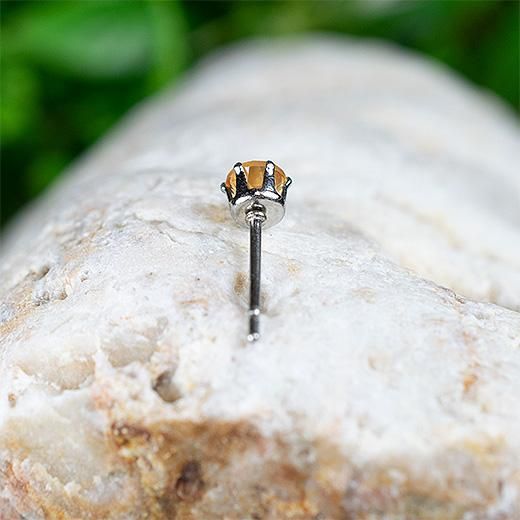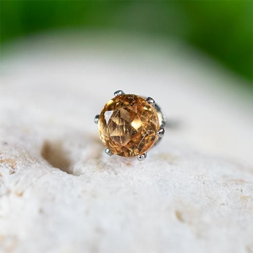 明るいオレンジ色の輝きを放ち、発色の良さと透明感が魅力的な石です。