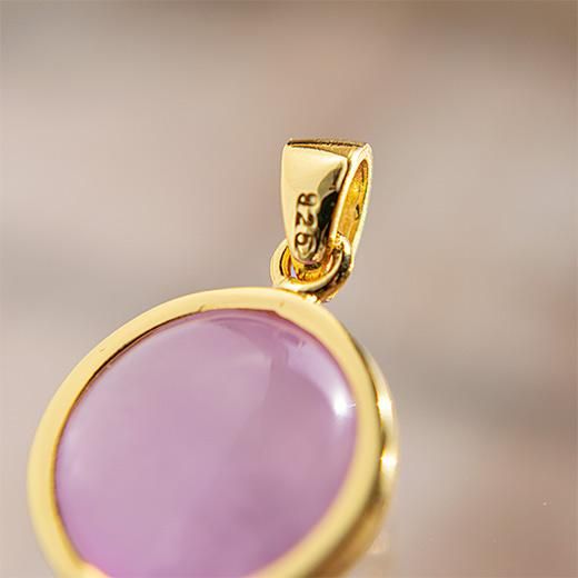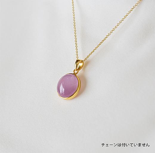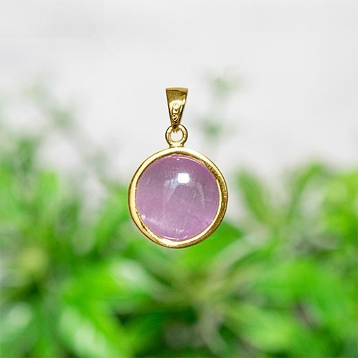 紫がかったピンク色が可愛らしい雰囲気のクンツァイトで、光の反射によってキャッツアイ効果が見ることができます。