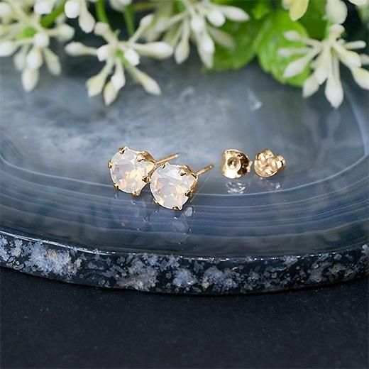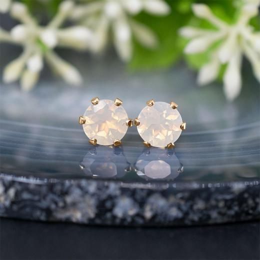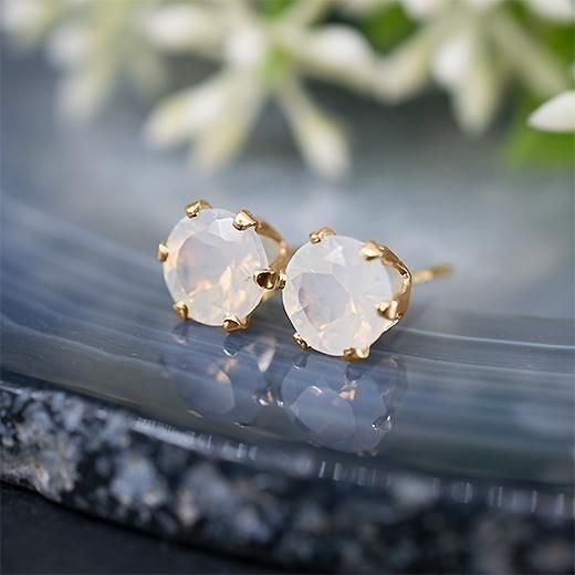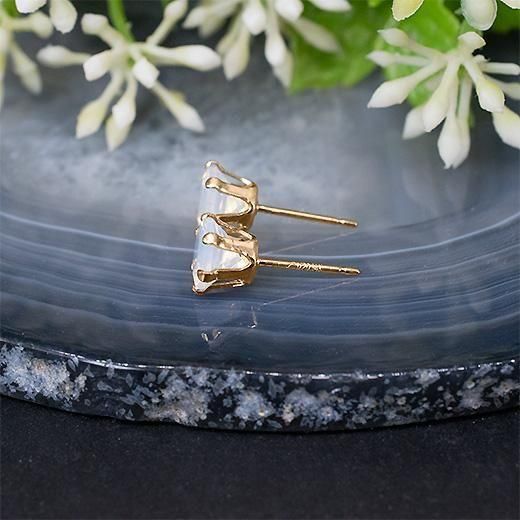 ムーンライトクォーツ(ムーンクォーツ)と呼ばれる水晶を使用したピアスです。